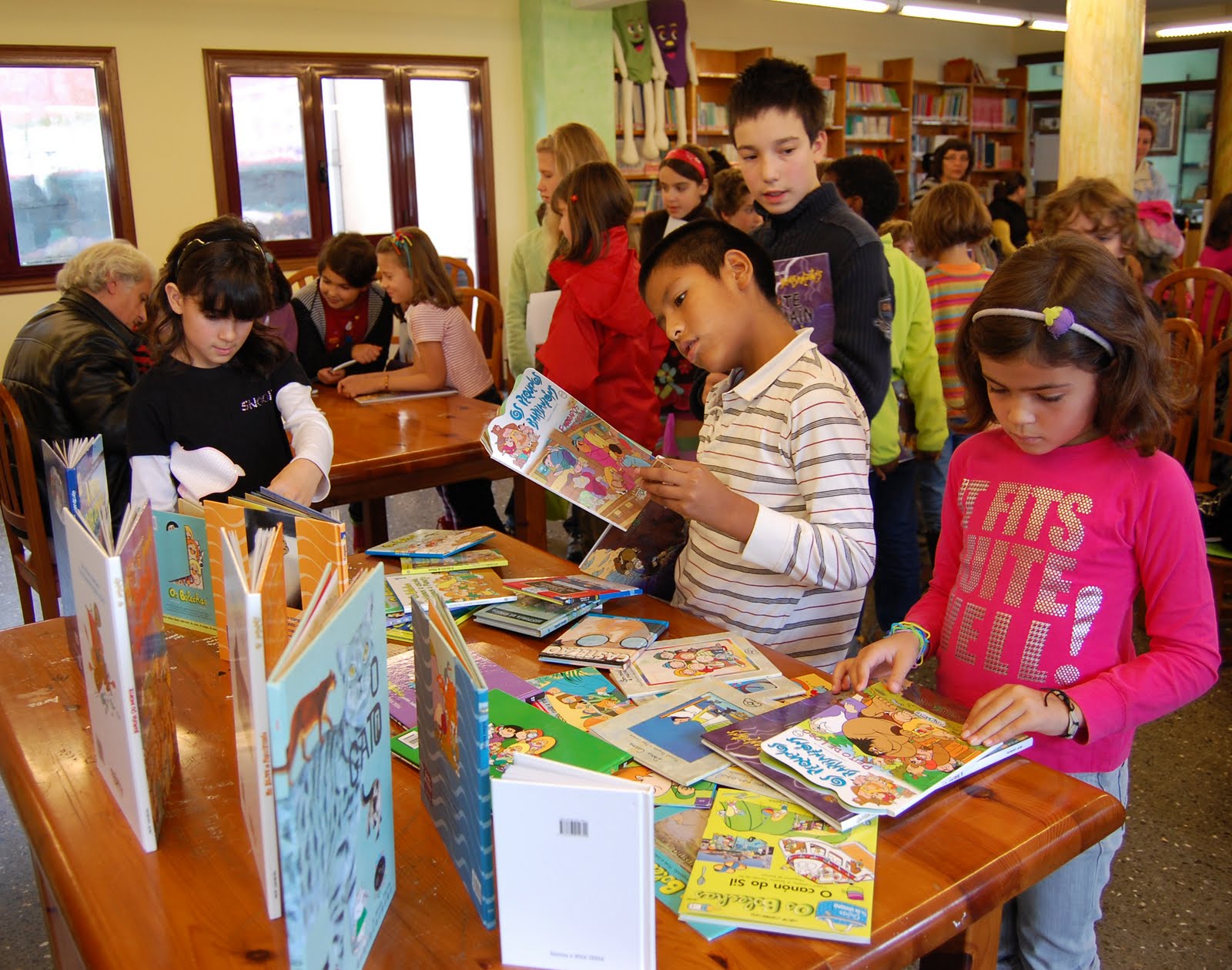 O club de lectura Lendo Contigo iniciou tempada con moi bo pé. Foron máis de 30 nenos e nenas, con cadanseus pais e nais, os que se achegaron á Biblioteca de Gondomar para falar con Pepe Carreiro sobre o seu libro A noite de Samaín. Moitos dos asistentes eran xa seareiros do club, como as dúas súper presentadoras de Pepe Carreiro, pero tamén houbo moitas caras novas que desexamos que repitan experiencia.